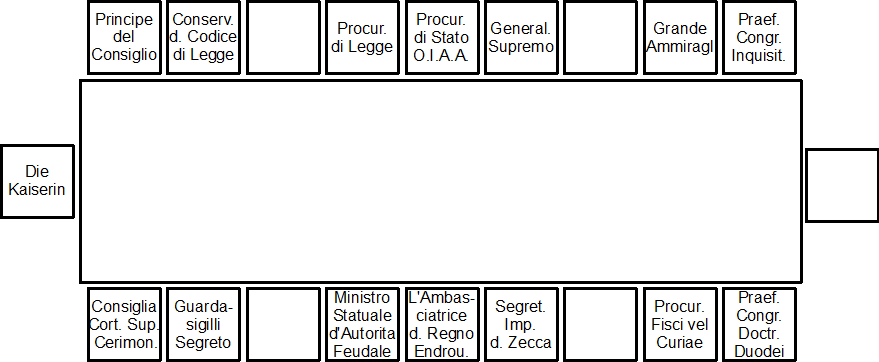- Der Kaiserliche Hofrat besteht aus der Kaiserin, dem Lichtboten, den vier Herzögen und den 12 Ministern des Imperio.