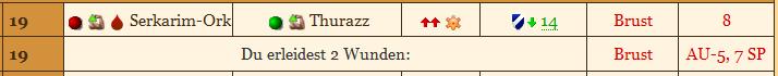 Kann mir hier jemand erklären, wo mein Denkfehler ist, bzw. wie genau das beim gezielten Stich funktioniert? An verringerter LE oder so kann es ja nicht liegen, denn mein Ork erfreute sich noch bester Gesundheit, wie man im Bild ja sieht.