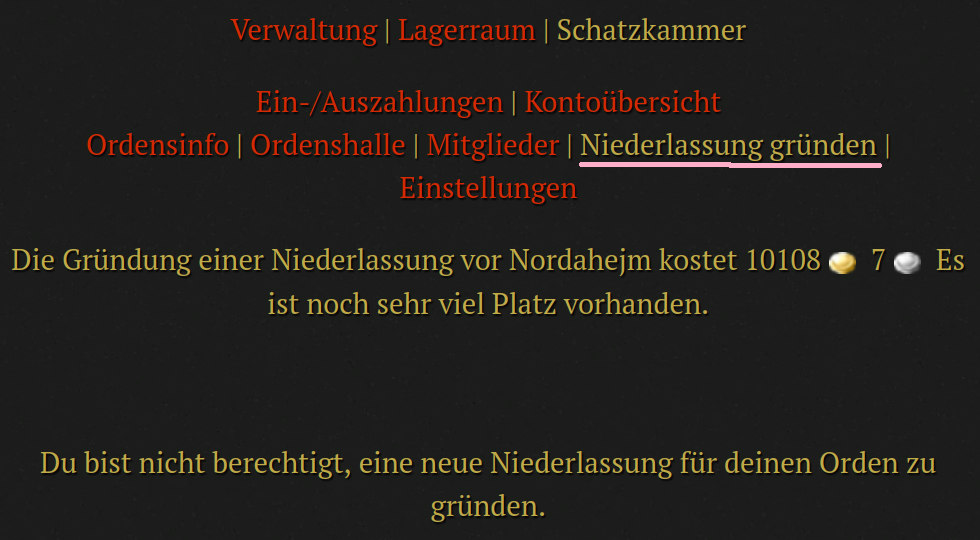Aber selbst die Chefin des Ordens bekommt die Fehlermeldung, dass sie nicht berechtigt dafür ist.