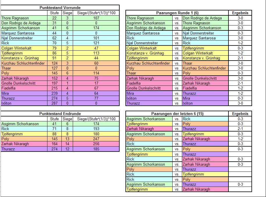 Damit wären die Kämpfe dann beendet und es wird Zeit für das offizielle Endergebnis. (Ich hab's dreimal hin und her gerechnet und hoffe, es ist nun fehlerfrei. Schaut ruhig nochmal nach.)