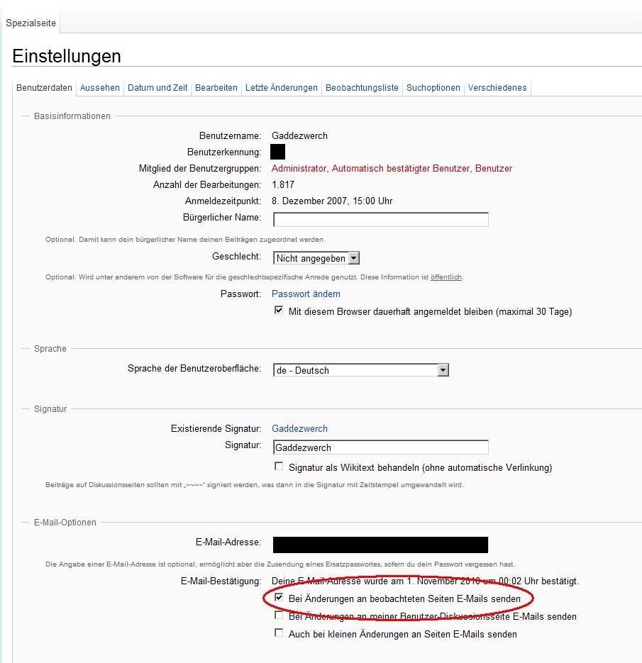 In den Einstellungen kann man angeben, ob man per E-Mail benachrichtigt werden will, sobald es Änderungen gibt: