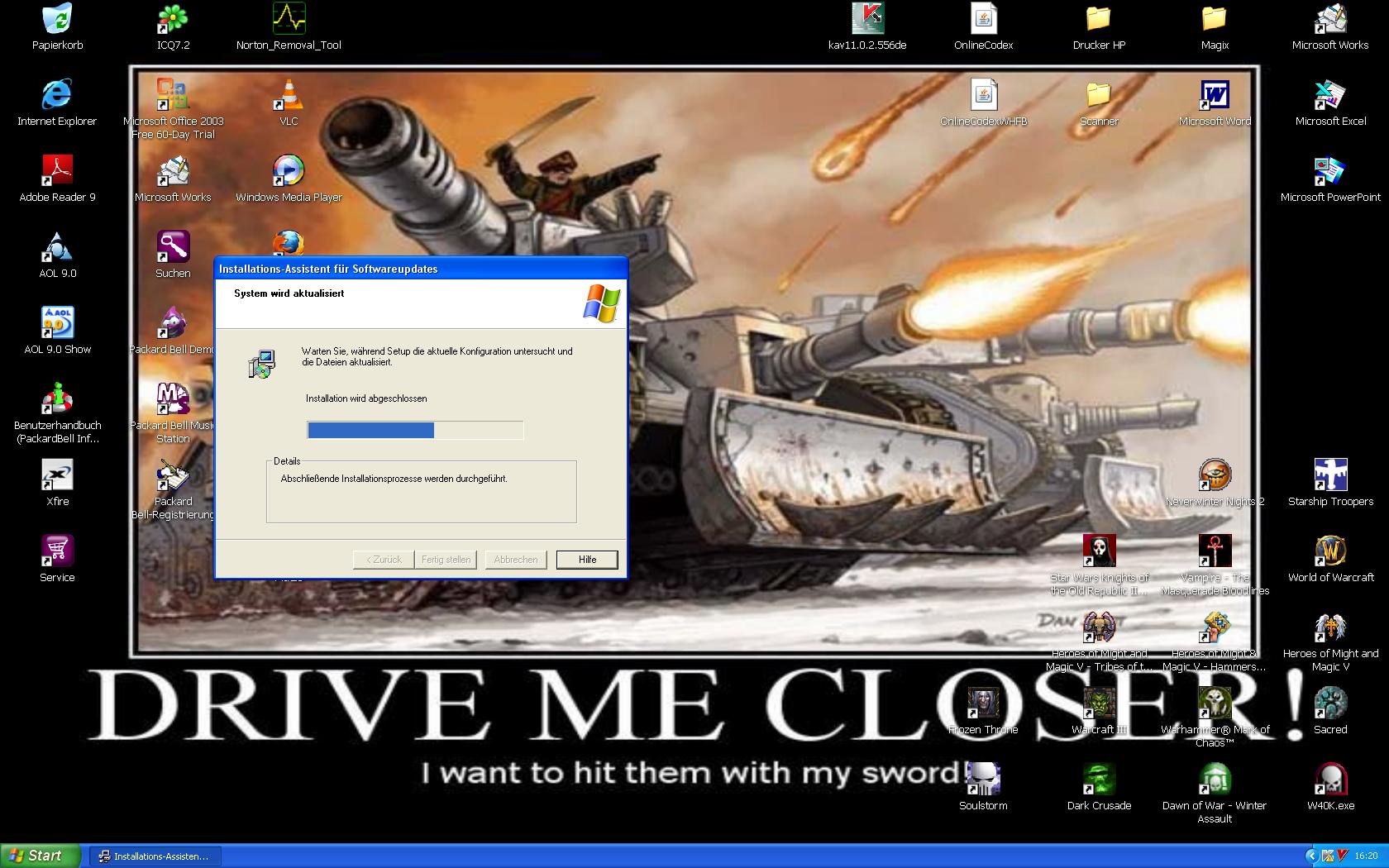 ich hab mir aus dem Inet das Service Paket 3 runtergeladen und versuch das nun zu installieren, das klappt auch bis zum letzten Schritt. Wenn er anzeigt, er macht die letzten Installationsprozesse, hängt sich da immer nach der Hälfte auf