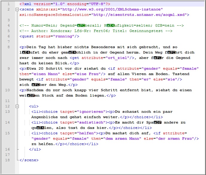 Zerschossene Dateien sehen im Editor in der Regel wie folgt aus: