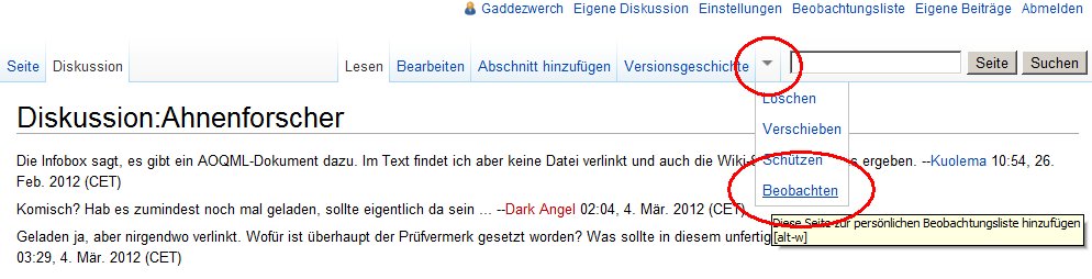 Wenn man eine Quest im Wiki eingetragen hat, bietet es sich an die Diskussionsseite zu abonnieren.